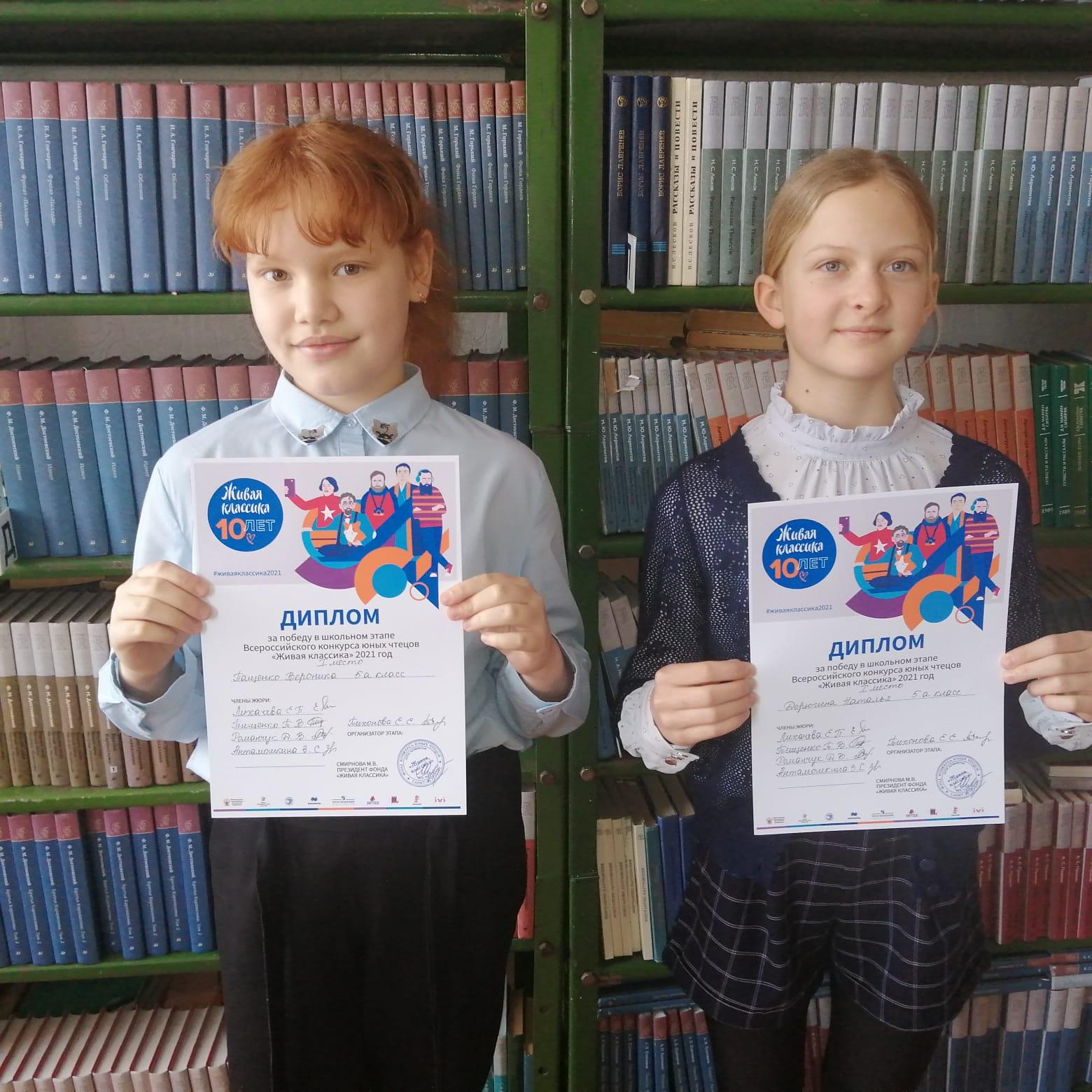 Им вручили Дипломы за победу на школьном этапе Всероссийского конкурса «Живая классика».